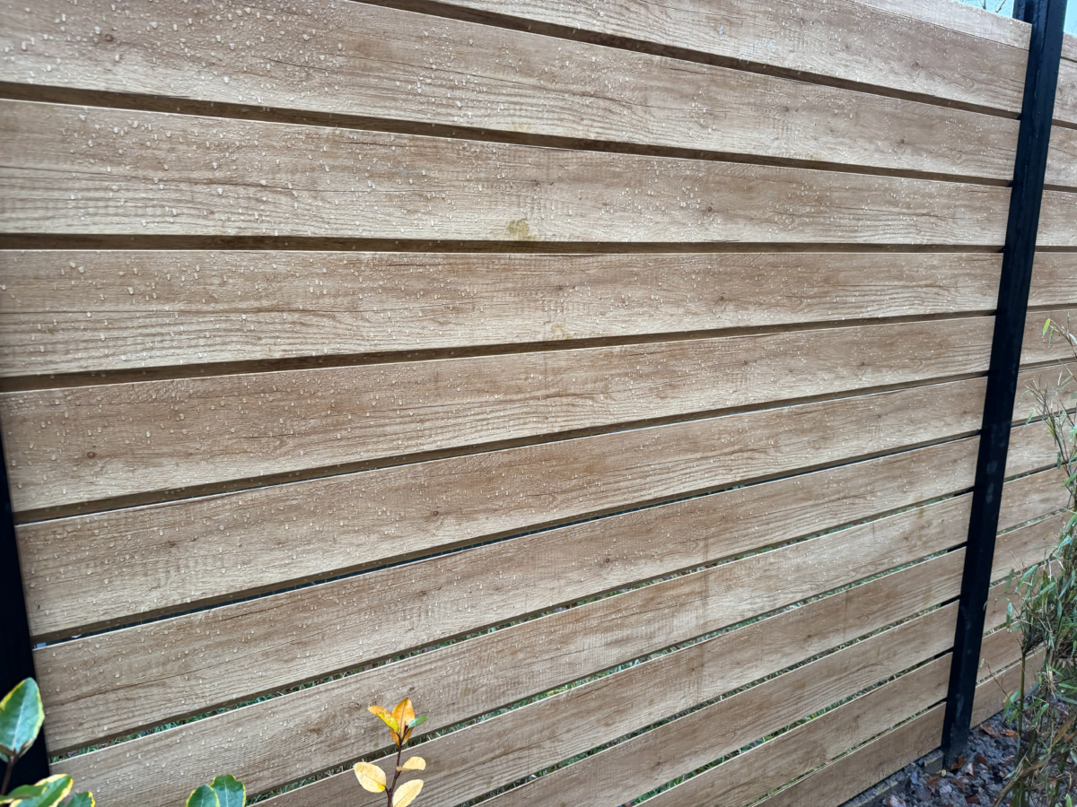 Zoom sur une réalisation : une clôture aluminium effet bois moderne et chaleureuse